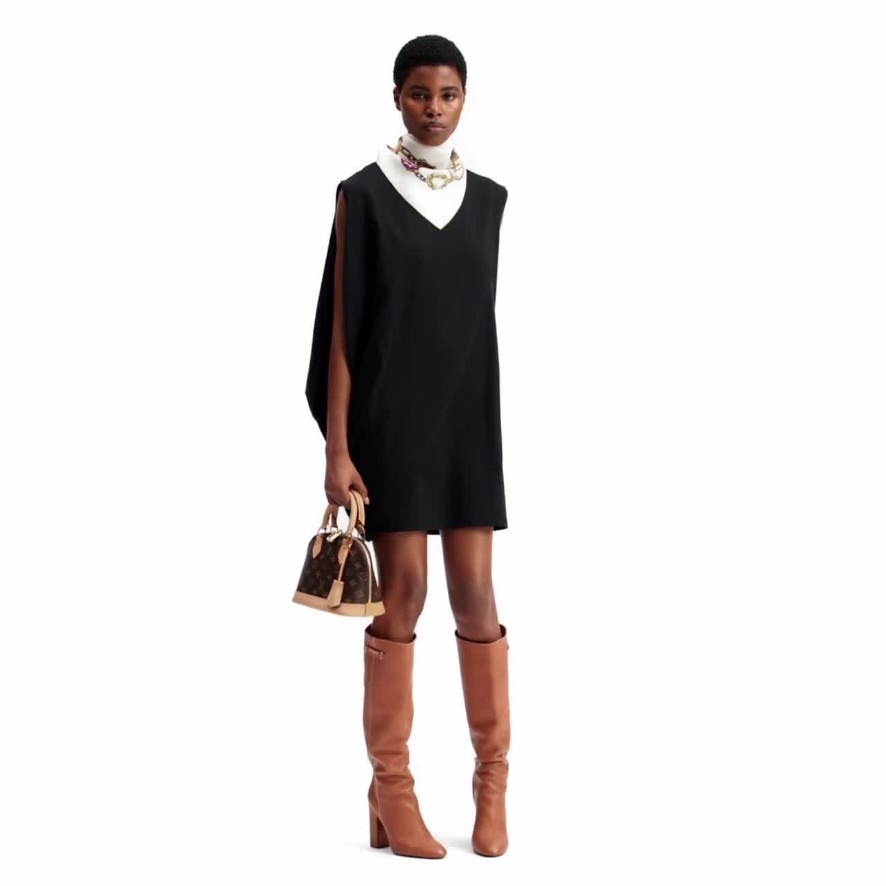 Sophisticated seasonal codes elevate this T-shirt dress with a contemporary air. It is cut from soft, breathable cotton jersey in a comfortable straight, sleeveless shape, while an asymmetrical layer twists around the silhouette for a graceful draped effect. The ribbed neckline is trimmed with a golden LV chain detail for a chic signature touch.