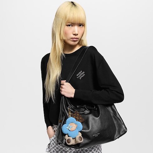 The House’s famous Monogram-inspired mascot is warming up for spring and summer with the My Vivienne Crochet bag charm. Crafted in fine cotton, it features Vivienne as an adorable plush toy whose crocheted texture goes perfectly with the season’s bag styles. A fun, on-trend accessory with a playful signature look.