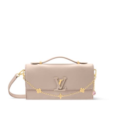 Showcasing the House’s exquisite craftsmanship, this LV Mirage edition of the Wallet On Chain Capucines strikes the balance of glamour and sophistication. The jewelry-inspired piece is crafted from Taurillon leather in a Quartz shade, embellished with elegant gold-toned hardware, including a charm-adorned chain. Inside, it opens to reveal a main compartment and is fitted with three slots to keep cards secure.