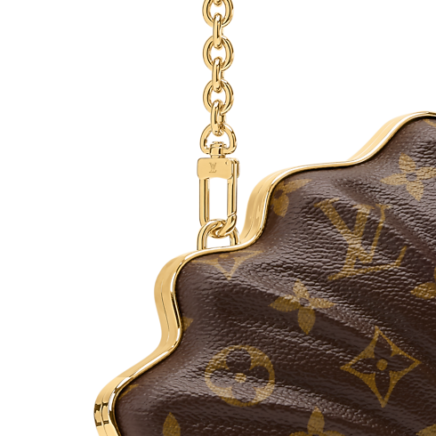 The Whisper handbag is a truly unique addition to any accessory edit. Taking the form of a shell, it is crafted from signature Monogram canvas with a smooth calfskin lining to keep valuables protected inside. The playful yet elegant design is adorned with a gold-toned chain and closes with a single button.