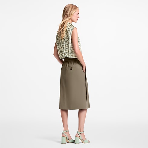 This cotton twill skirt has understated everyday appeal in an unfussy straight shape that falls to mid-calf. It has a casual, sporty feel thanks to a wide elasticized waistband and a double-ended zipper fastening at the front. The back pocket is discreetly signed with an LV Initials tab for a subtle House touch.