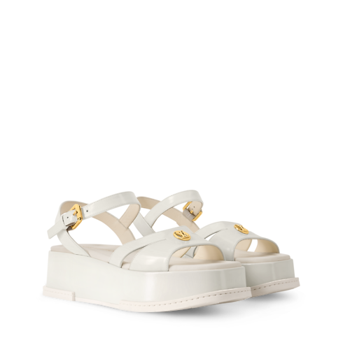 Louis Vuitton’s collection of sandals and espadrilles for women embraces flat, wedge, platform and strappy models. Opt for the glamour of a high-heeled evening number or the laid-back chic of an espadrille: all these fashionable styles are expertly crafted in Italy and embellished with the Maison’s signature accents.