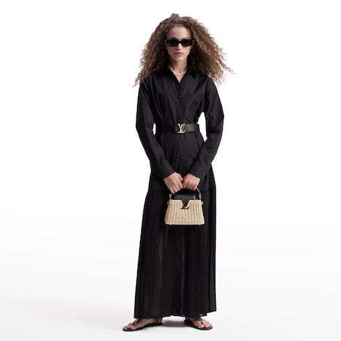 Terinspirasi dari Picnic Trunk ikonis kreasi Rumah Mode pada tahun 1892, Capucines Mini ini cocok digunakan di musim panas. Desainnya yang unik dianyam cermat dengan tangan dari material rattan selama dua hari, serta dilengkapi trimming berbahan kulit. Sementara detail LV Initials yang khas hadir dalam nuansa emas yang elegan. Tas ini dapat diselempang, dibawa di bahu, atau dijinjing.